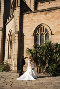 From there, we made our way to Liverpool Parish Church (Our Lady and Saint Nicholas), and wow, what a setting for a ceremony. Sunlight poured through the windows as they exchanged vows, creating this warm, golden glow that made everything feel straight out of a fairytale. The moment they said “I do” was met with cheers, a few more happy tears, and a whole lot of love. Stepping out of the church as newlyweds, arm in arm with each other, surrounded by their beautiful kiddos was just magical!